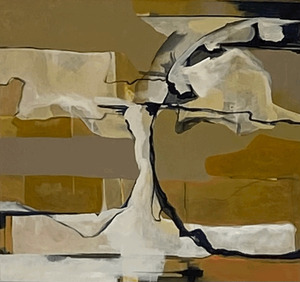 Dit werk gaat over de verbinding tussen schijnbare tegenstellingen zoals materie en geest. Een boom met takken die de lucht kussen en wortels die de bodem vast houden.